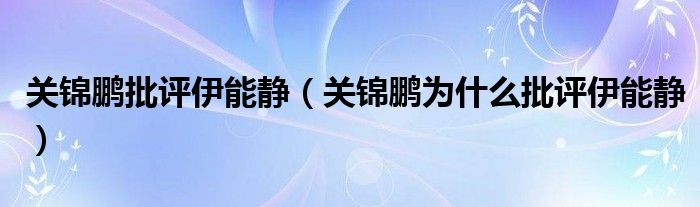 大家好,綜合小編來為大家講解下。關錦鵬批評伊能靜,關錦鵬為什么批評伊能靜很多人還不知道,現在讓我們一起來看看吧!