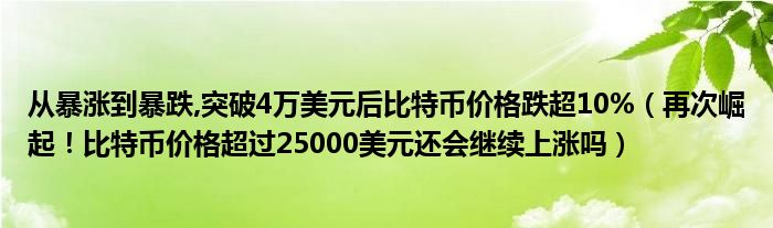 大家好,綜合小編來為大家講解下。從暴漲到暴跌,突破4萬美元后比特幣價格跌超10%,再次崛起!比特幣價格超過25000美元還會繼續上漲嗎很多人還不知道,現在讓我們一起來看看吧!