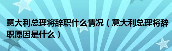 大家好,綜合小編來為大家講解下。意大利總理將辭職什么情況,意大利總理將辭職原因是什么很多人還不知道,現在讓我們一起來看看吧!