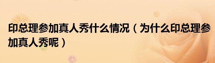 大家好,綜合小編來(lái)為大家講解下。印總理參加真人秀什么情況,為什么印總理參加真人秀呢很多人還不知道,現(xiàn)在讓我們一起來(lái)看看吧!