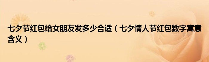 大家好,小安來為大家解答以上的問題七夕節紅包給女朋友發多少合適,七夕情人節紅包數字寓意含義這個很多人還不知道,現在讓我們一起來看看吧!
