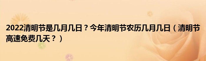 大家好,小安來為大家解答以上的問題2022清明節(jié)是幾月幾日?今年清明節(jié)農(nóng)歷幾月幾日,清明節(jié)高速免費(fèi)幾天?這個(gè)很多人還不知道,現(xiàn)在讓我們一起來看看吧!