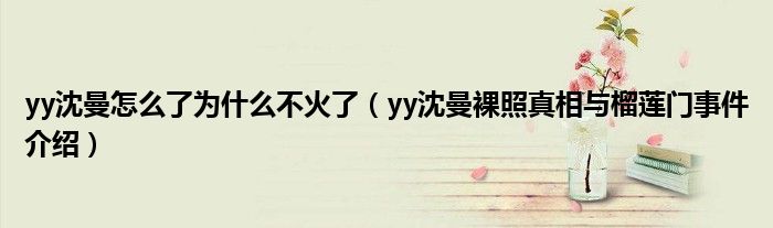 大家好,小安來為大家解答以上的問題yy沈曼怎么了為什么不火了,yy沈曼裸照真相與榴蓮門事件介紹這個很多人還不知道,現在讓我們一起來看看吧!