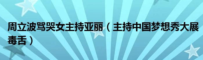大家好,小安來為大家解答以上的問題周立波罵哭女主持亞麗,主持中國夢想秀大展毒舌這個很多人還不知道,現在讓我們一起來看看吧!