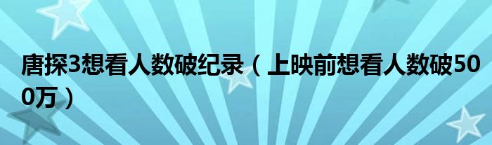 大家好,綜合小編來為大家講解下。唐探3想看人數破紀錄,上映前想看人數破500萬很多人還不知道,現在讓我們一起來看看吧!