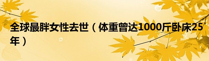 大家好,綜合小編來為大家講解下。全球最胖女性去世,體重曾達1000斤臥床25年很多人還不知道,現(xiàn)在讓我們一起來看看吧!