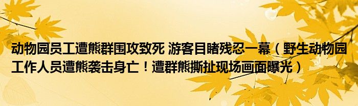 大家好,綜合小編來為大家講解下。動物園員工遭熊群圍攻致死 游客目睹殘忍一幕,野生動物園工作人員遭熊襲擊身亡!遭群熊撕扯現場畫面曝光很多人還不知道,現在讓我們一起來看看吧!