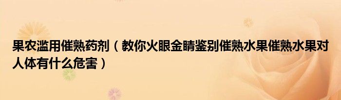 大家好,綜合小編來為大家講解下。果農濫用催熟藥劑,教你火眼金睛鑒別催熟水果催熟水果對人體有什么危害很多人還不知道,現在讓我們一起來看看吧!