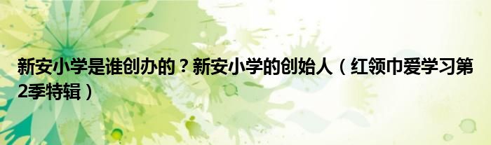 大家好,小安來為大家解答以上的問題新安小學是誰創辦的?新安小學的創始人,紅領巾愛學習第2季特輯這個很多人還不知道,現在讓我們一起來看看吧!