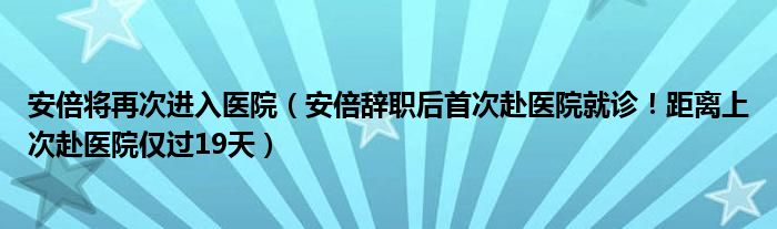 大家好,綜合小編來為大家講解下。安倍將再次進入醫院,安倍辭職后首次赴醫院就診!距離上次赴醫院僅過19天很多人還不知道,現在讓我們一起來看看吧!