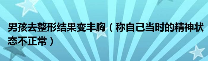 大家好,綜合小編來為大家講解下。男孩去整形結果變豐胸,稱自己當時的精神狀態不正常很多人還不知道,現在讓我們一起來看看吧!