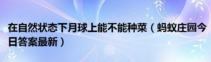 大家好,小安來為大家解答以上的問題在自然狀態下月球上能不能種菜,螞蟻莊園今日答案最新這個很多人還不知道,現在讓我們一起來看看吧!