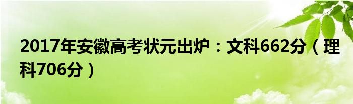 大家好,小安來為大家解答以上的問題2017年安徽高考狀元出爐:文科662分,理科706分這個很多人還不知道,現在讓我們一起來看看吧!