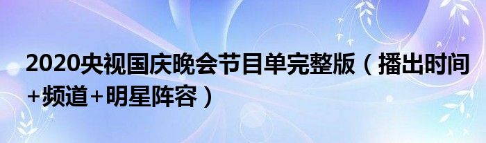 大家好,小安來為大家解答以上的問題2020央視國慶晚會節目單完整版,播出時間+頻道+明星陣容這個很多人還不知道,現在讓我們一起來看看吧!