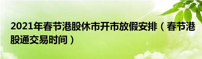 2021年春節(jié)港股休市開市放假安排 春節(jié)港股通交易時間>>