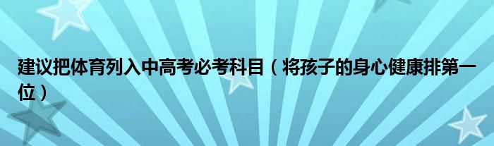 大家好,綜合小編來為大家講解下。建議把體育列入中高考必考科目,將孩子的身心健康排第一位很多人還不知道,現(xiàn)在讓我們一起來看看吧!