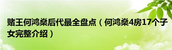 大家好,小安來為大家解答以上的問題賭王何鴻燊后代最全盤點,何鴻燊4房17個子女完整介紹這個很多人還不知道,現在讓我們一起來看看吧!