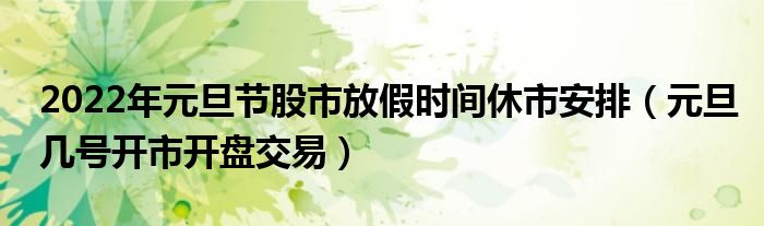 大家好,小安來為大家解答以上的問題2022年元旦節股市放假時間休市安排,元旦幾號開市開盤交易這個很多人還不知道,現在讓我們一起來看看吧!