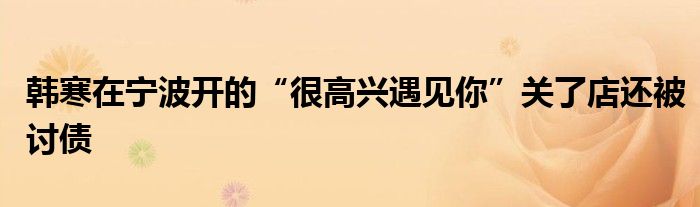大家好,小安來(lái)為大家解答以上的問(wèn)題韓寒在寧波開(kāi)的“很高興遇見(jiàn)你”關(guān)了店還被討債這個(gè)很多人還不知道,現(xiàn)在讓我們一起來(lái)看看吧!