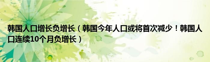 大家好,綜合小編來為大家講解下。韓國人口增長負增長,韓國今年人口或將首次減少!韓國人口連續10個月負增長很多人還不知道,現在讓我們一起來看看吧!