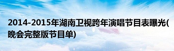 大家好,小安來為大家解答以上的問題2014-2015年湖南衛視跨年演唱節目表曝光(晚會完整版節目單)這個很多人還不知道,現在讓我們一起來看看吧!