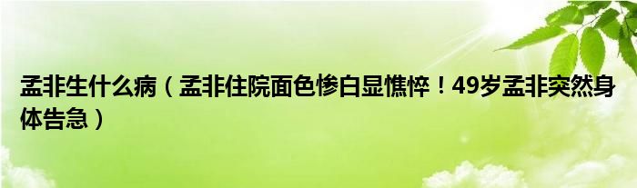 大家好,綜合小編來為大家講解下。孟非生什么病,孟非住院面色慘白顯憔悴!49歲孟非突然身體告急很多人還不知道,現在讓我們一起來看看吧!