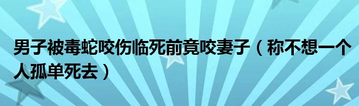 大家好,小安來為大家解答以上的問題男子被毒蛇咬傷臨死前竟咬妻子,稱不想一個人孤單死去這個很多人還不知道,現在讓我們一起來看看吧!