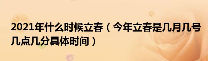 2021年什么時候立春?立春是我國二十四節(jié)氣當中的重要節(jié)氣,立春代表春天即將到來,那么今年立春是幾月幾號幾點幾分呢?下面給大家介紹2021年立春的具體時間。