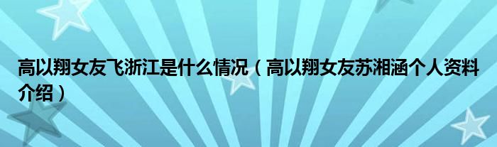 大家好,小安來為大家解答以上的問題高以翔女友飛浙江是什么情況,高以翔女友蘇湘涵個人資料介紹這個很多人還不知道,現(xiàn)在讓我們一起來看看吧!