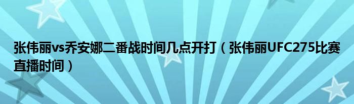 UFC275-張偉麗vs喬安娜二番戰(zhàn)比賽直播時(shí)間:6月12日10:00開打