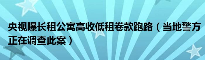 大家好,綜合小編來為大家講解下。央視曝長租公寓高收低租卷款跑路,當地警方正在調查此案很多人還不知道,現在讓我們一起來看看吧!