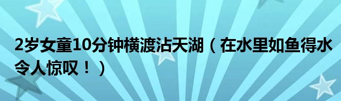 大家好,綜合小編來(lái)為大家講解下。2歲女童10分鐘橫渡沾天湖,在水里如魚(yú)得水令人驚嘆!很多人還不知道,現(xiàn)在讓我們一起來(lái)看看吧!