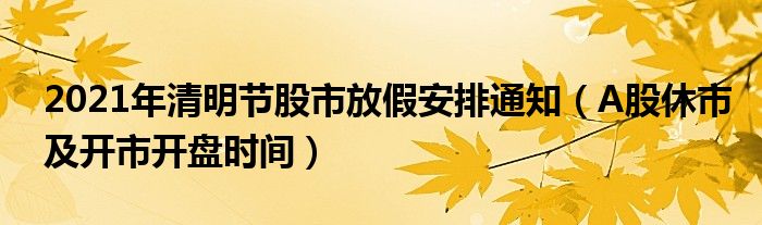 2021年清明節(jié)股市放假安排通知 A股休市及開市開盤時間