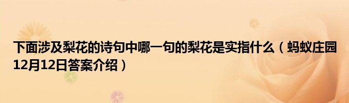 螞蟻莊園12月12的題目來了,在“雨打梨花深閉門”和“千樹萬樹梨花開”這兩句涉及梨花的詩句中,哪一句的梨花是實指呢?下面小編帶來:螞蟻莊園12月12日答案介紹。