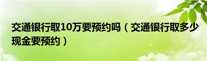 大家好,綜合小編來為大家講解下。交通銀行取10萬要預約嗎,交通銀行取多少現金要預約很多人還不知道,現在讓我們一起來看看吧!