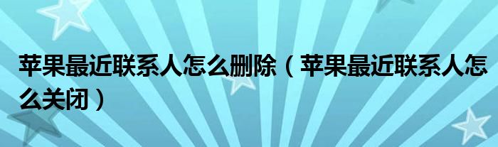 大家好,綜合小編來為大家講解下。蘋果最近聯系人怎么刪除,蘋果最近聯系人怎么關閉很多人還不知道,現在讓我們一起來看看吧!