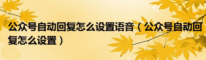 大家好,綜合小編來為大家講解下。公眾號自動回復怎么設置語音,公眾號自動回復怎么設置很多人還不知道,現在讓我們一起來看看吧!