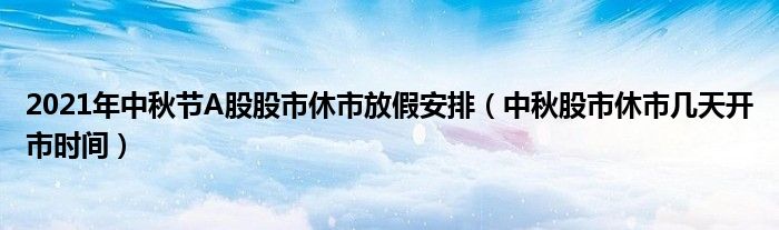 大家好,小安來為大家解答以上的問題2021年中秋節A股股市休市放假安排,中秋股市休市幾天開市時間這個很多人還不知道,現在讓我們一起來看看吧!