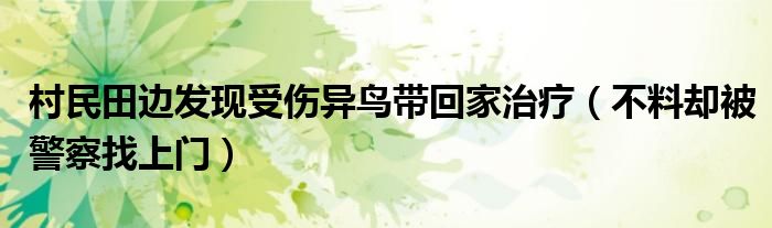 大家好,綜合小編來為大家講解下。村民田邊發(fā)現(xiàn)受傷異鳥帶回家治療,不料卻被警察找上門很多人還不知道,現(xiàn)在讓我們一起來看看吧!