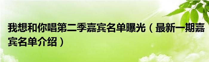 大家好,小安來為大家解答以上的問題我想和你唱第二季嘉賓名單曝光,最新一期嘉賓名單介紹這個很多人還不知道,現在讓我們一起來看看吧!