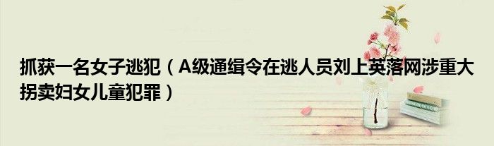 大家好,綜合小編來為大家講解下。抓獲一名女子逃犯,A級通緝令在逃人員劉上英落網涉重大拐賣婦女兒童犯罪很多人還不知道,現在讓我們一起來看看吧!