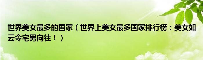 大家好,綜合小編來為大家講解下。世界美女最多的國家,世界上美女最多國家排行榜:美女如云令宅男向往!很多人還不知道,現在讓我們一起來看看吧!