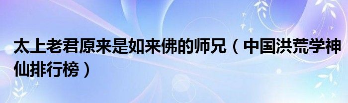 大家好,綜合小編來為大家講解下。太上老君原來是如來佛的師兄,中國洪荒學神仙排行榜很多人還不知道,現在讓我們一起來看看吧!