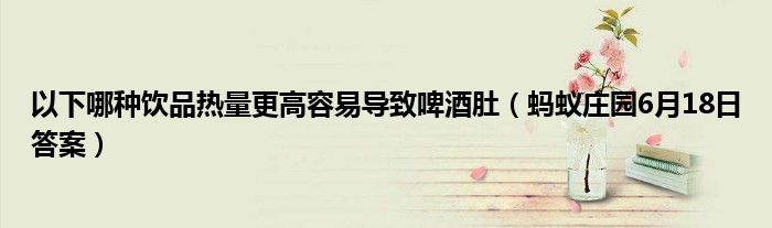 大家好,綜合小編來為大家講解下。以下哪種飲品熱量更高容易導致啤酒肚,螞蟻莊園6月18日答案很多人還不知道,現在讓我們一起來看看吧!