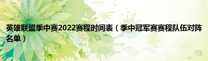 大家好,小安來為大家解答以上的問題英雄聯盟季中賽2022賽程時間表,季中冠軍賽賽程隊伍對陣名單這個很多人還不知道,現在讓我們一起來看看吧!