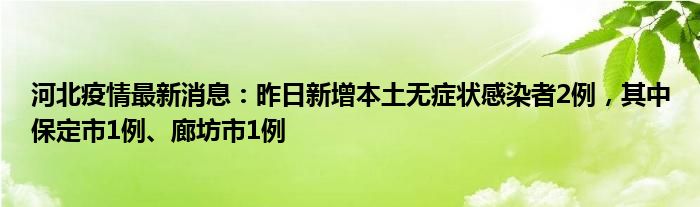 大家好,小安來為大家解答以上的問題河北疫情最新消息:昨日新增本土無癥狀感染者2例,其中保定市1例、廊坊市1例這個很多人還不知道,現在讓我們一起來看看吧!