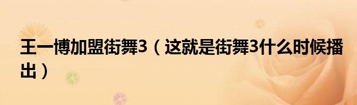大家好,綜合小編來為大家講解下。王一博加盟街舞3,這就是街舞3什么時候播出很多人還不知道,現在讓我們一起來看看吧!