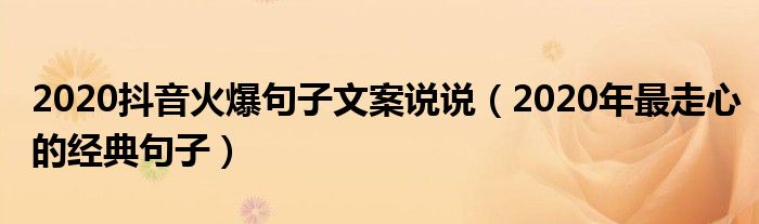 大家好,綜合小編來為大家講解下。2020抖音火爆句子文案說說,2020年最走心的經典句子很多人還不知道,現在讓我們一起來看看吧!