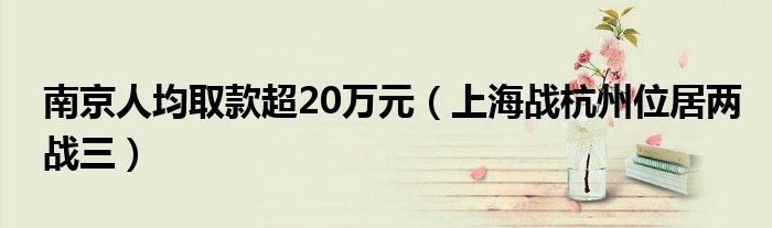大家好,綜合小編來為大家講解下。南京人均取款超20萬元,上海戰杭州位居兩戰三很多人還不知道,現在讓我們一起來看看吧!