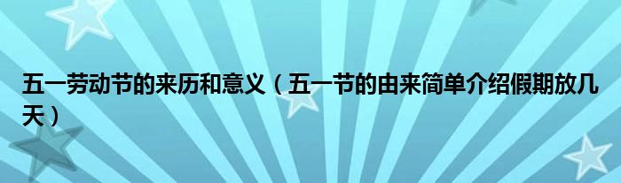 大家好,小安來為大家解答以上的問題五一勞動節的來歷和意義,五一節的由來簡單介紹假期放幾天這個很多人還不知道,現在讓我們一起來看看吧!